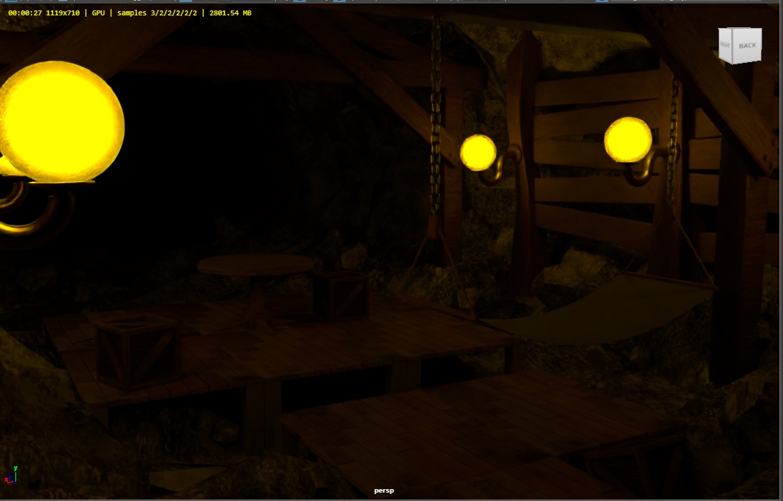 | 06/01 - 06/07 | テーブルのUV展開、木枠の作成、nClothを使用したハンモックの作成、木壁と鉱石作成、Maya上で配置モデルのレイアウト |