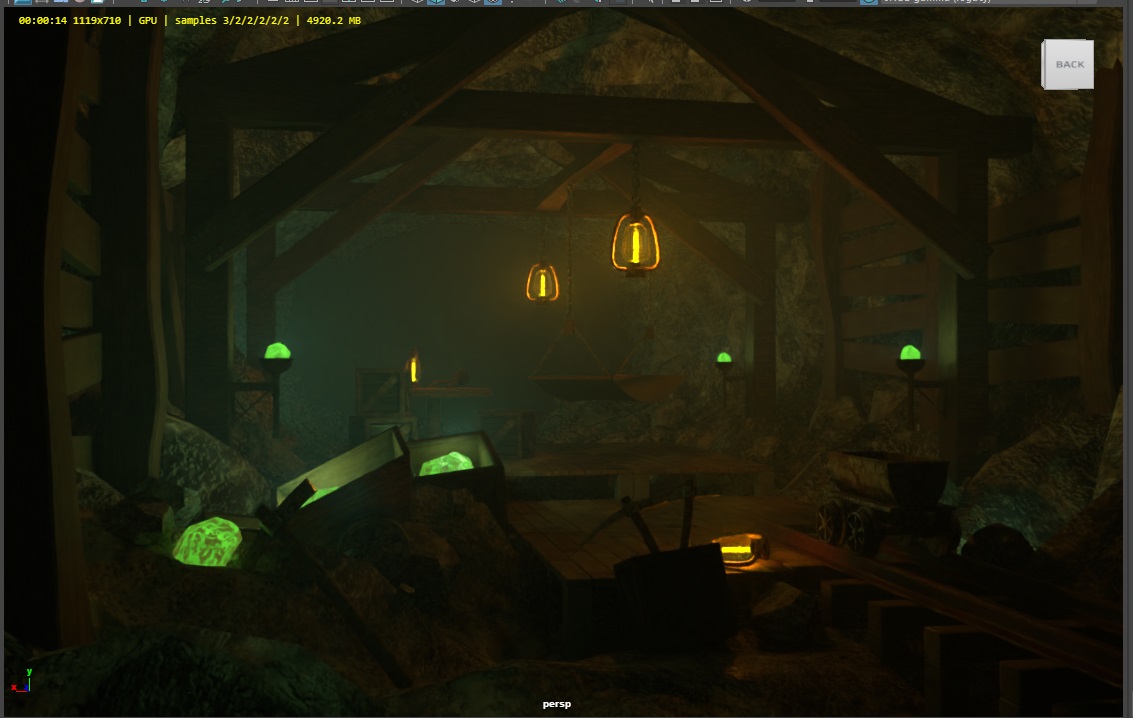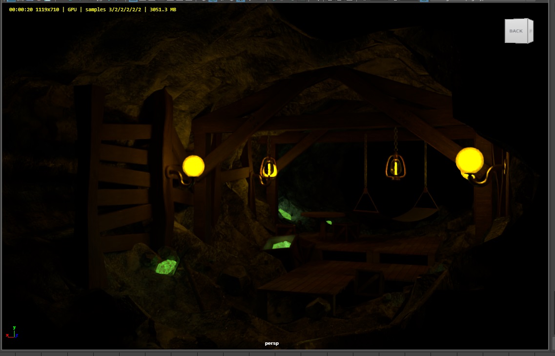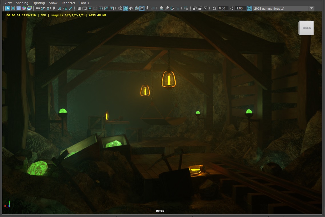 | 05/18 - 05/24 | 資料収集、Substanceのテクスチャ出力フローの確認、Houdiniで洞窟のモデリング、レンダリング設定調査、ランプのモデリングとマテリアル作成 |