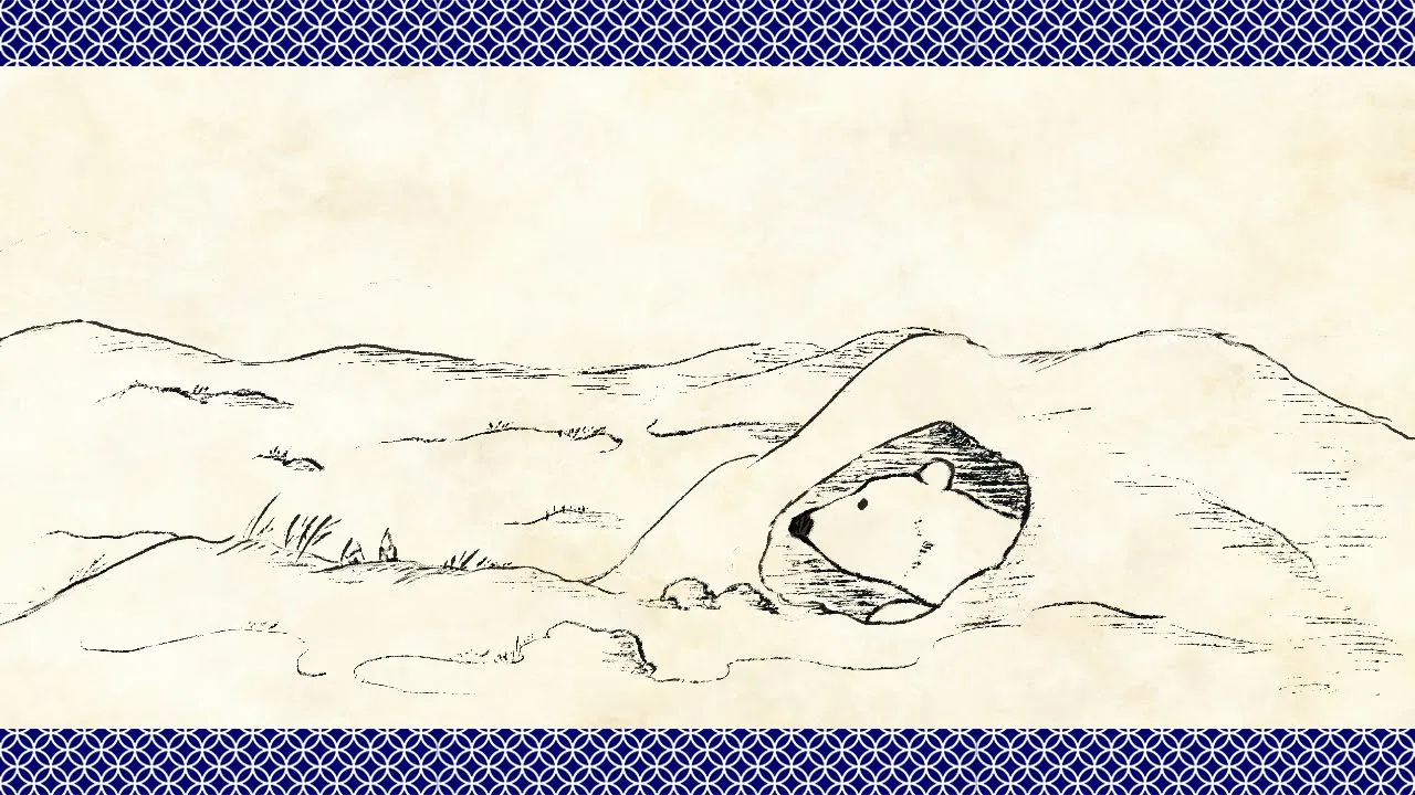 冬眠から覚めた熊が四季の山々を歩き回る様子を絵巻物風CGで表現しました。